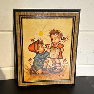 - 美術品・アンティーク・コレクション > コレクション > M.J. Hummel 子供のイラスト プレート Set of Two Small Vintage Wooden Framed Art MJ Hummel Boy And