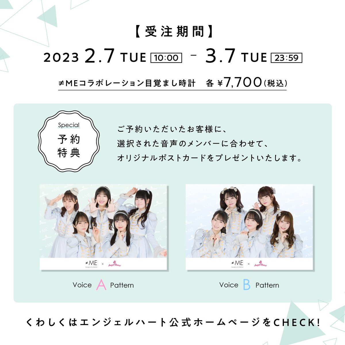 | 商品の特徴 | LOVE(イコラブ)コラボ目覚まし予約受注 | 株式会社ザ・クロック。MEZAMASHI-≠ME-ドット×音声A | Angel Heart Official Online Shop。お知らせ] ≠ME×時計ブランド『Angel Heart』とコラボ。LOVE(イコラブ)コラボ目覚まし予約受注 | 株式会社ザ・クロック。AngelHeart コラボレーションイコラブ ノイミー 目覚まし時計2個セット新品未開封 | ||